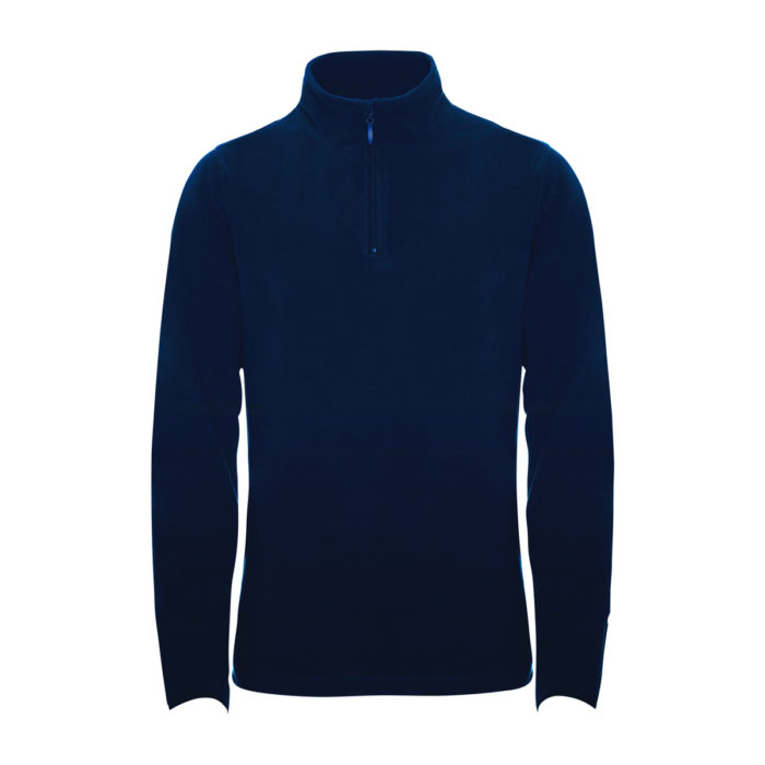 Micropolaire avec col cheminée et protecteur menton. Poignets liserés élastiques ton sur ton.